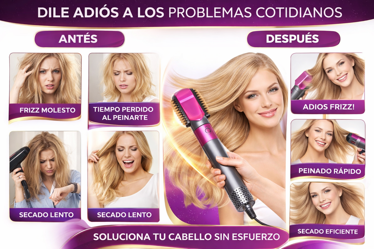 Tu cabello nunca queda como quieres, aunque lo intentes todos los días. El frizz, el calor y la falta de tiempo no deberían robarte la confianza. Con el GlowBrush logras un peinado lindo en minutos, sin dañar tu pelo ✨ Envíos Gratis a todo Ecuador Ofertas limitada no te quedes sin el tuyo